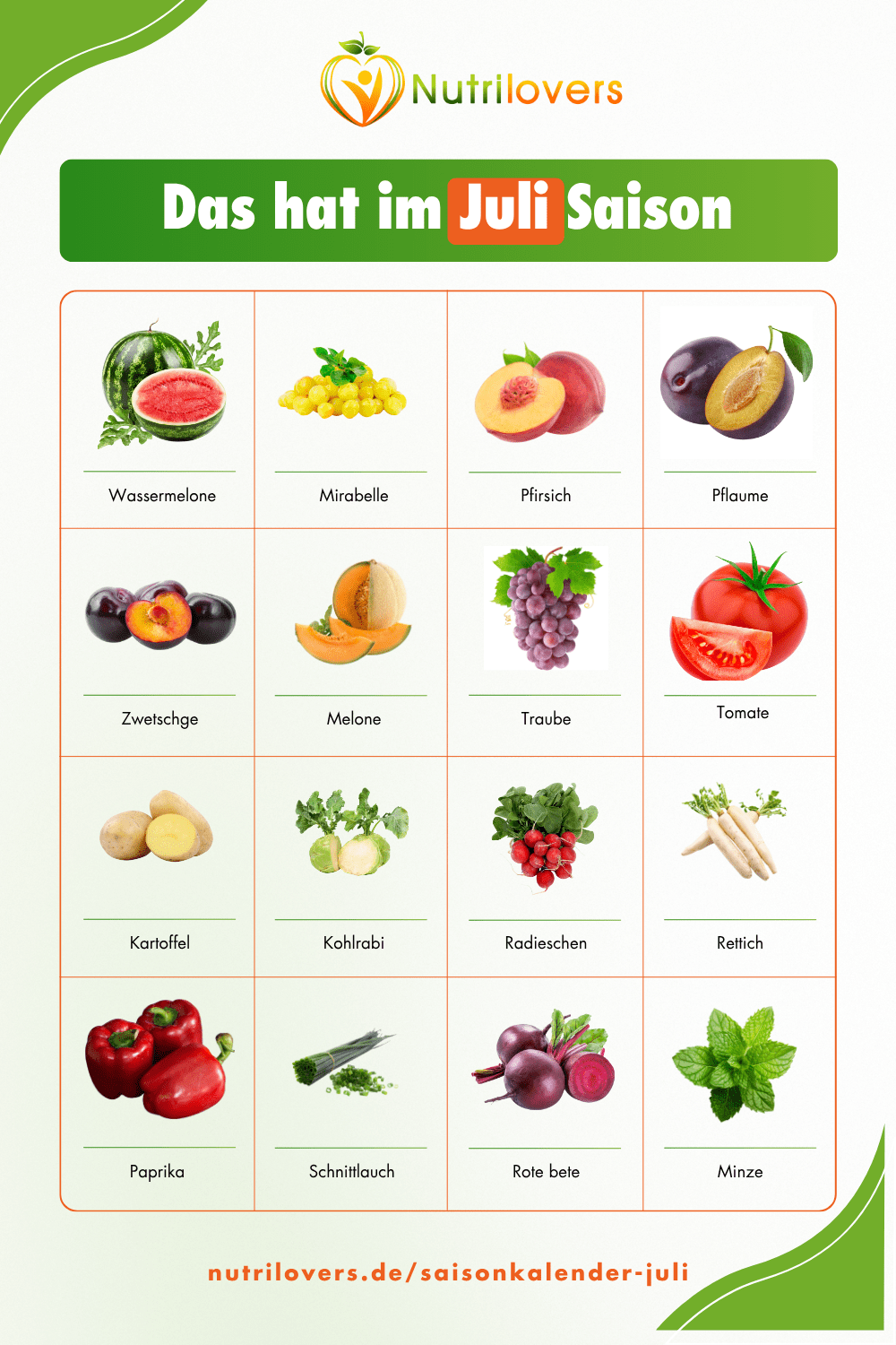 Mit dem Nutrilovers Saisonkalender erfährst du, welche Früchte, Gemüsesorten und Kräuter gerade Saison haben – frisch, regional und voller Geschmack.