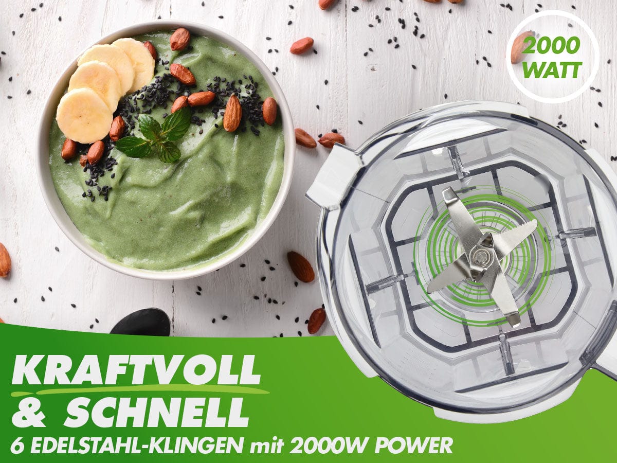 Leistung und Motorstärke: Nutrilovers Hochleistungsmixer hat 2000W (2.7 PS)